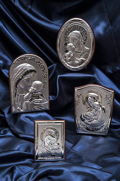 Nel nostro showroom è presente, inoltre, un’ampia selezione di oggetti con immagini sacre e religiose in argento, con supporti e basi in legno, tra cui crocifissi, medaglie, rosari, sopraculle, calamite, portachiavi, ciondoli, realizzati in stile classico o moderno.